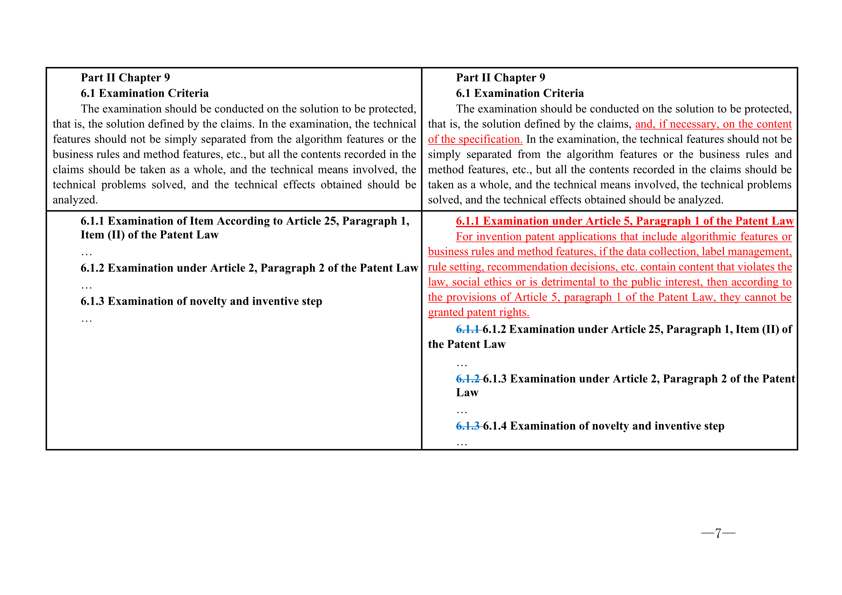 Comparison of Amendments to the Patent Examination Guidelines (2025)