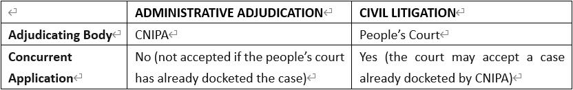 Moreover, If the patentee or the interested party fails to commence court proceedings within the 45-day period, pursuant to Article 4 of the Judicial Interpretation on Civil Cases of Drug Patent Disputes, a drug marketing authorization applicant (a generic drug applicant) may either file a lawsuit with a people’s court or request the CNIPA to render an administrative adjudication in relation to a drug patent dispute, seeking a determination that the drug for which registration is being applied does not fall within the scope of protection of the relevant patent right.