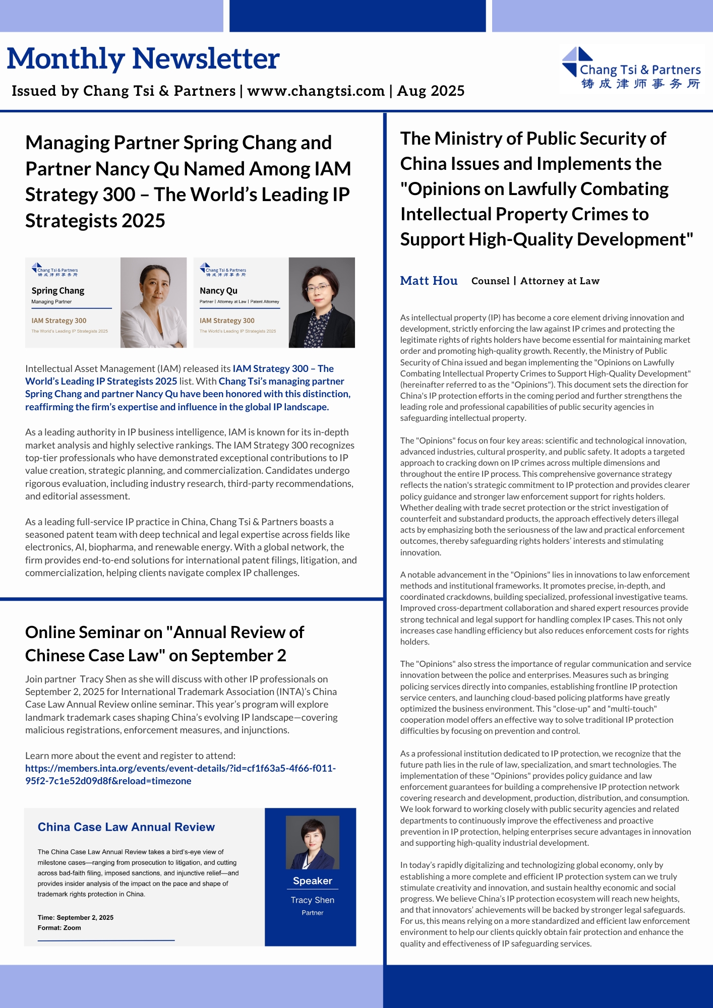 Chang Tsi Newsletter - August 2025
